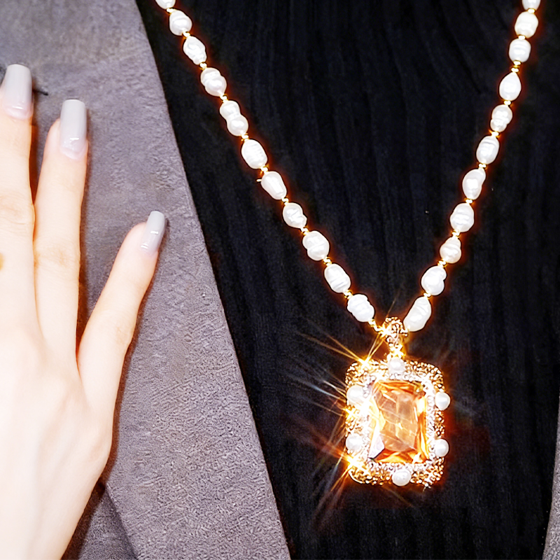 ✨✨Плащане при доставка ✅️Ново квадратно перлено колие, универсален и семпъл аксесоар, елегантна верижка за пуловер, украсена с кристали.