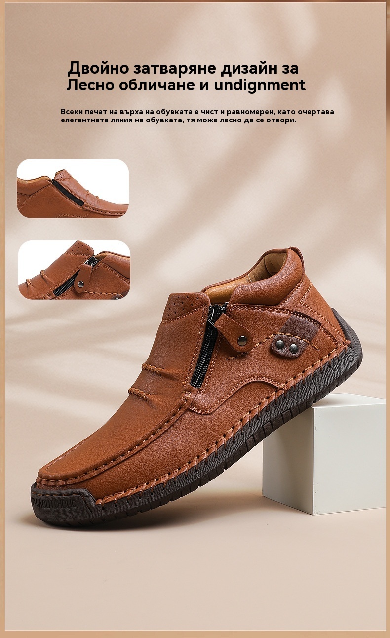 👞 Плащане при доставка✅️【38-48】Мъжки шофьорски ботуши, изработени от висококачествена кожа, ръчно изработени, неплъзгащи се - широка предна част, опора на свода