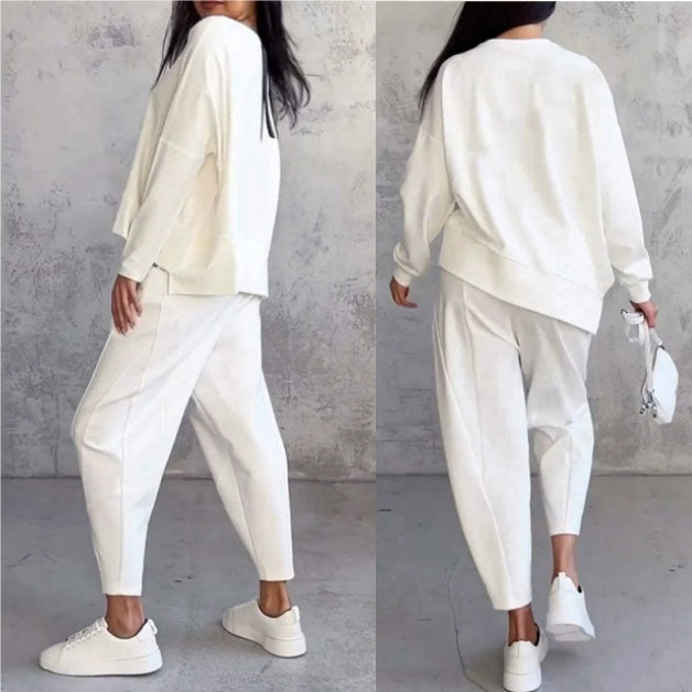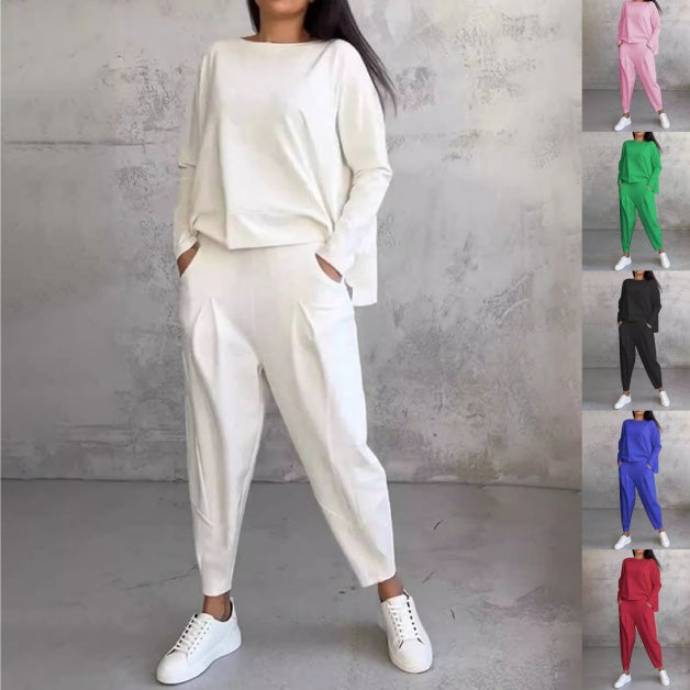 💖【Top + Kalhoty】 Módní dvoudílná souprava, jednobarevné ležérní a trendy dámské oblečení, příjemná látka z čisté bavlny
