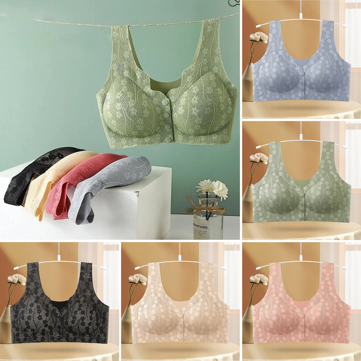 🎁😍【50% kedvezmény】💖【5 részes készlet】Női vezeték nélküli melltartó, elülső záródás, varrás nélküli jégselyem