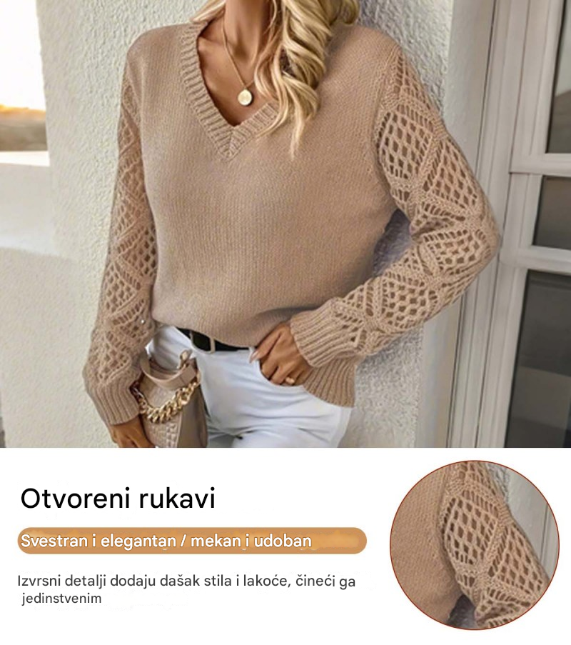 🌷Popust -48%🔥 Novi džemper s V-izrezom i ažurnim uzorkom - Elegancija u svakom detalju! Svestran i moderan! ✨