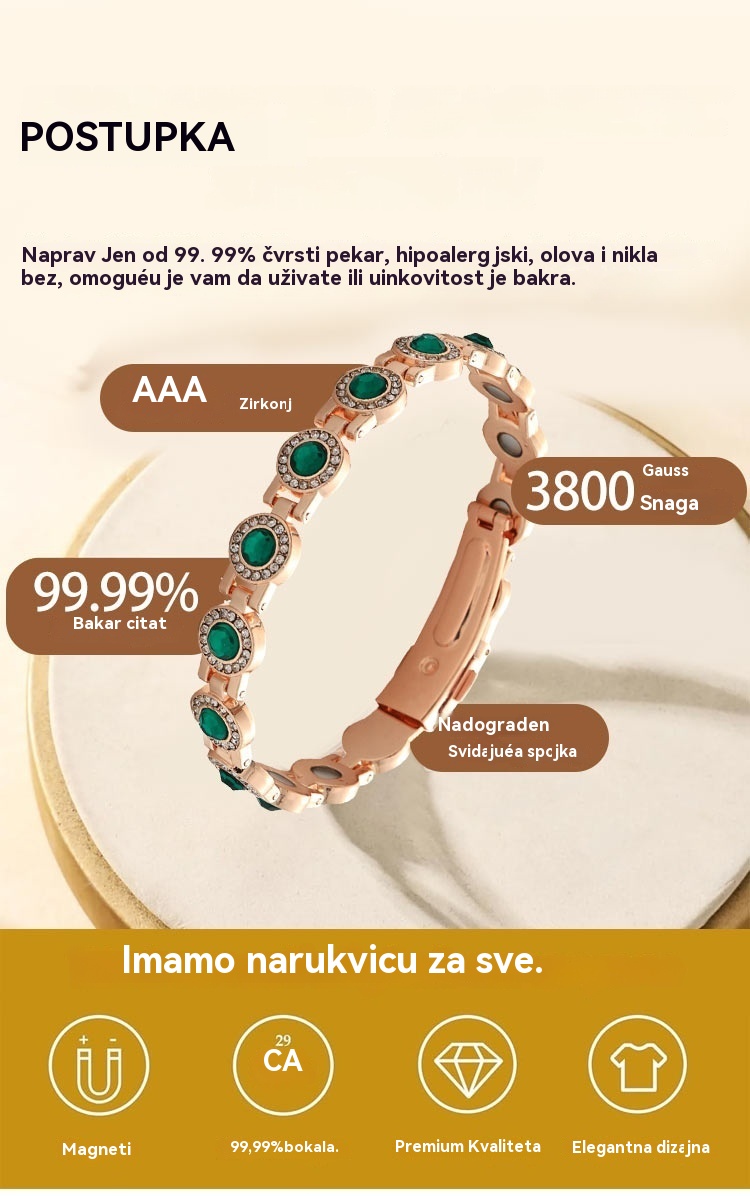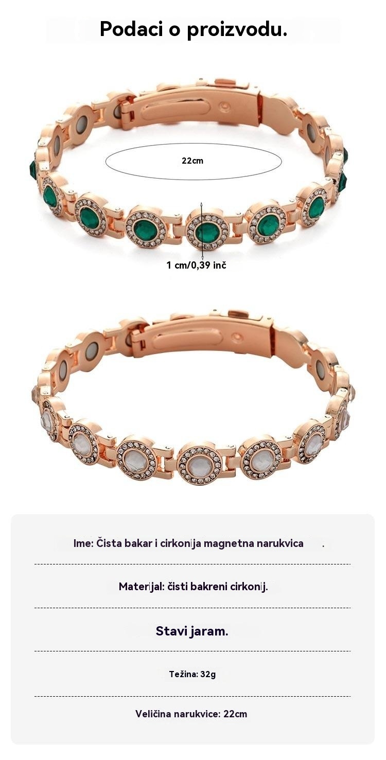 🎁 50% popusta✨✨--Moderna luksuzna magnetska narukvica od legure, magnetska narukvica izrađena od čistog bakra i kubnog cirkonija ✅️ Plaćanje pouzećem