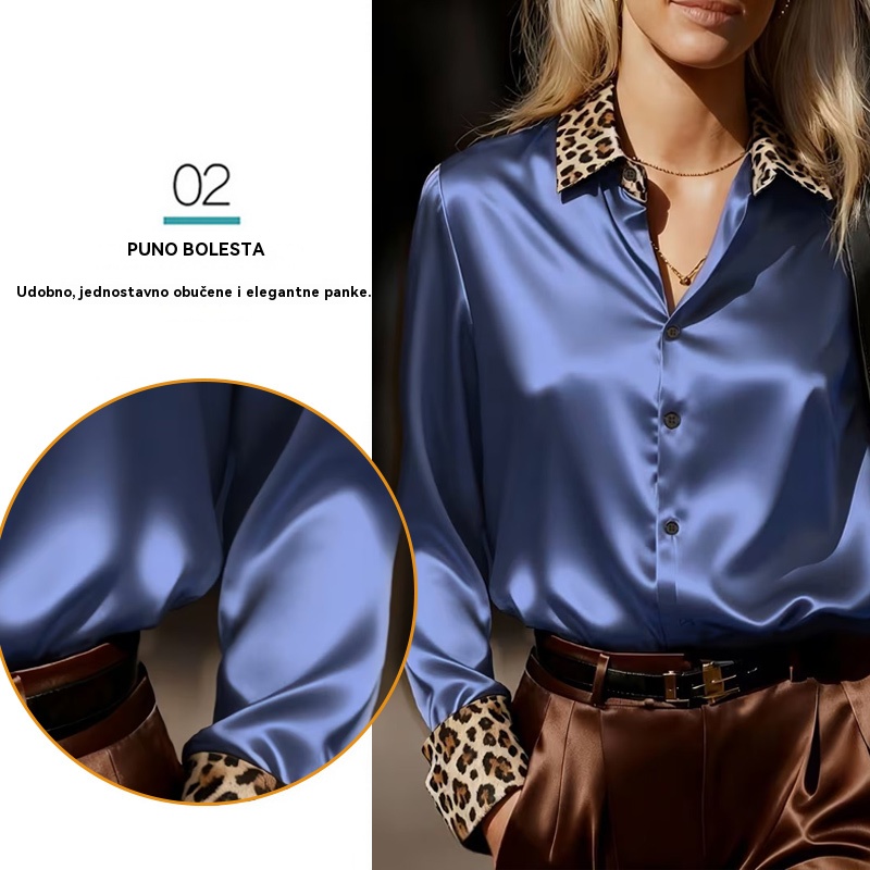 🎁Popust -48%🔥【S-2XL】Nova satenska majica dugih rukava s leopard printom u retro stilu u boji