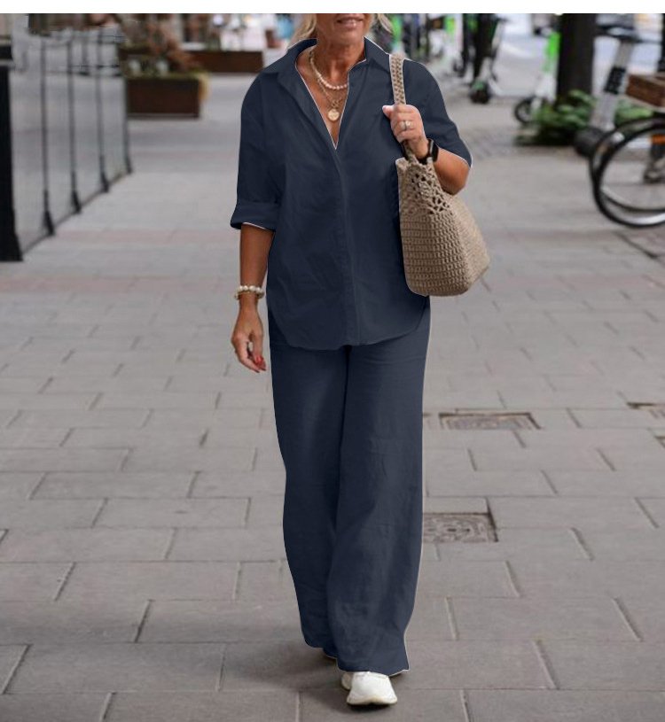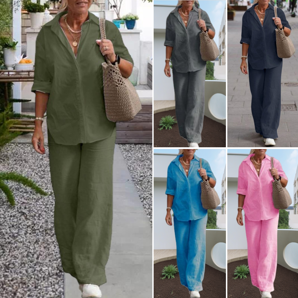 🔥🎉【Felső + Nadrág】【S-5XL】Új, modern, lezser egyszínű női inges szett