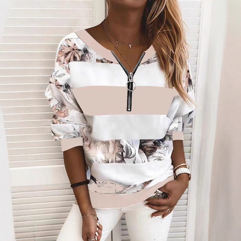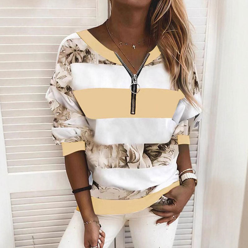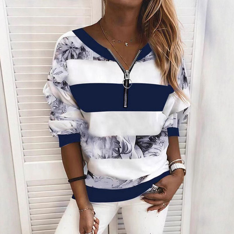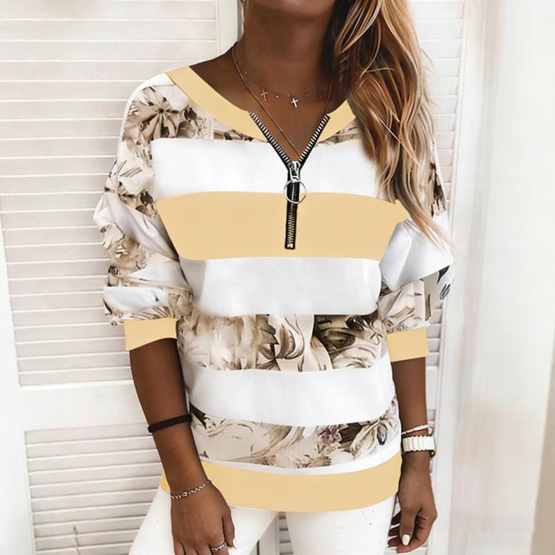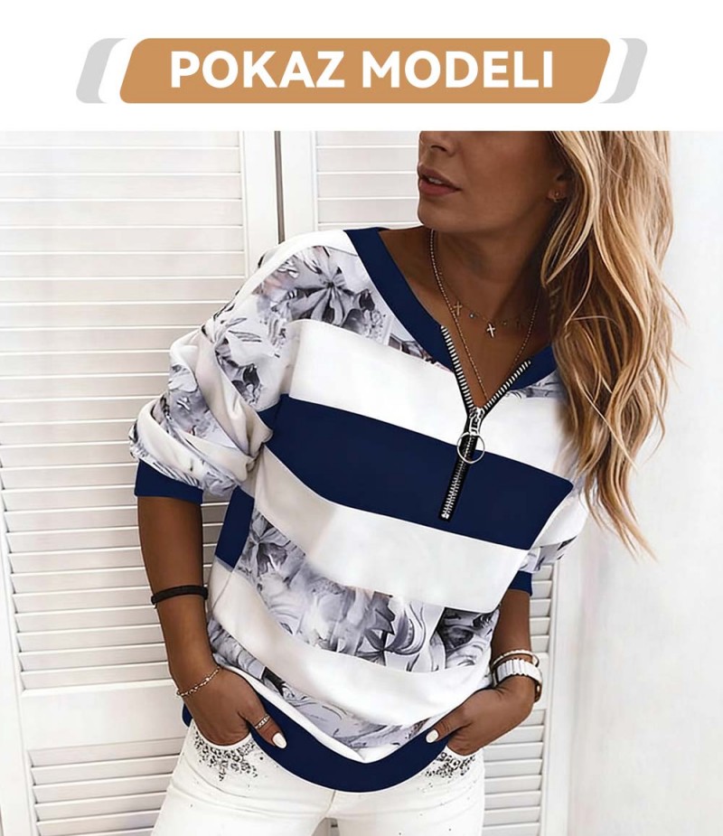 🔥🔥50% popusta🔥【S-5XL】Nova ženska ležerna majica s prugastim printom i patentnim zatvaračem iz 2026. ✅Plaćanje pouzećem