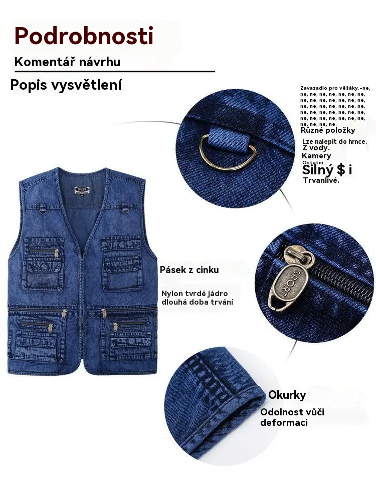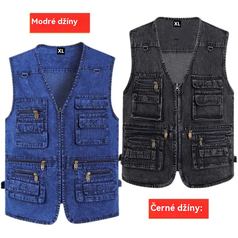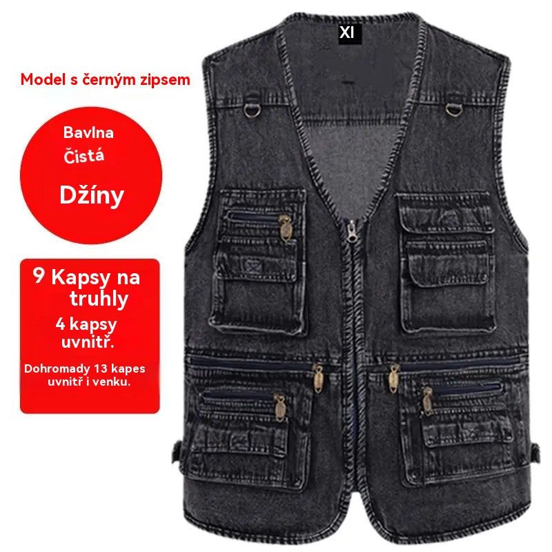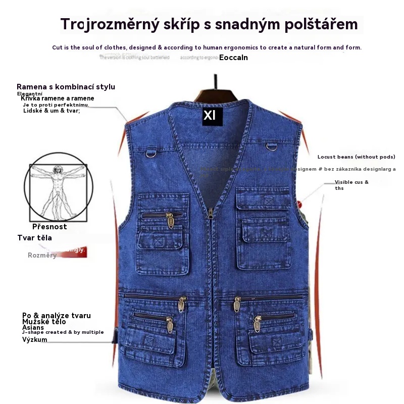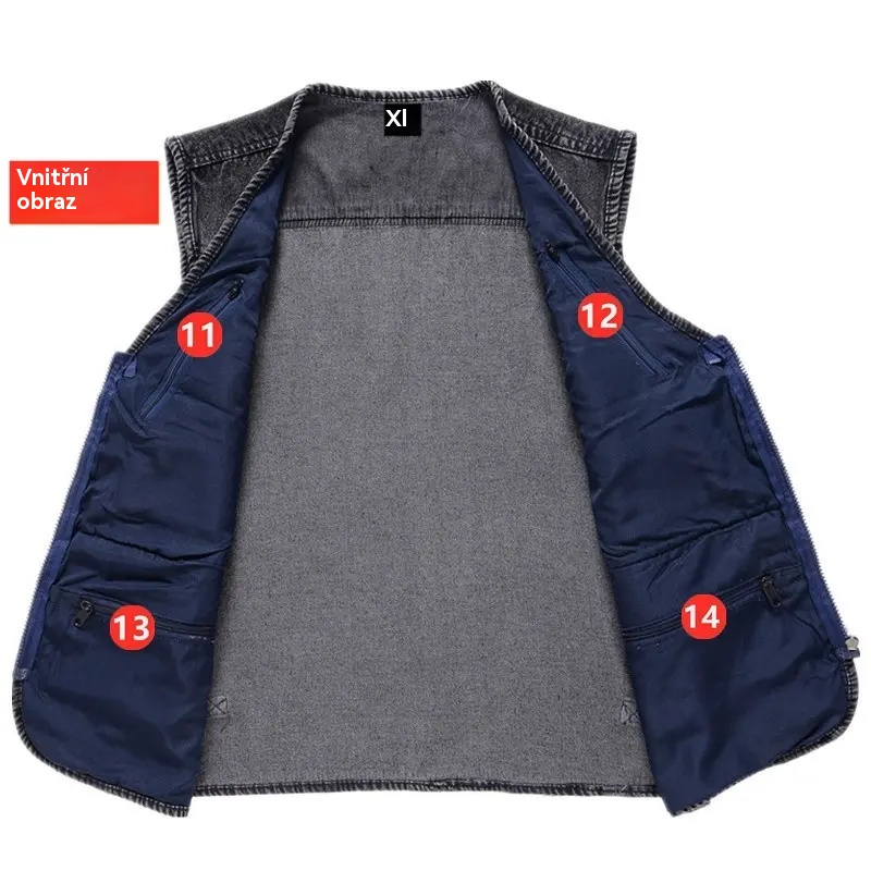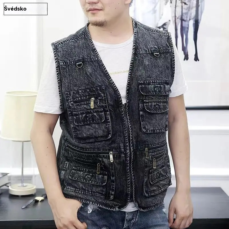 🔥【XL-7XL】Pánská džínová vesta s více kapsami, rok výroby 2025 -- 4084359