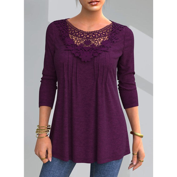 🔥Popust -50% 🔥【S-5XL】Nova ženska modna majica dugih rukava s izrezom od čipke ✅Plaćanje pouzećem