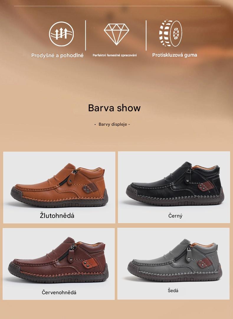 👞【38-48】Pánské řidičské boty, vyrobené z vysoce kvalitní kůže, ručně vyrobené, protiskluzové - široká špička, podpora klenby