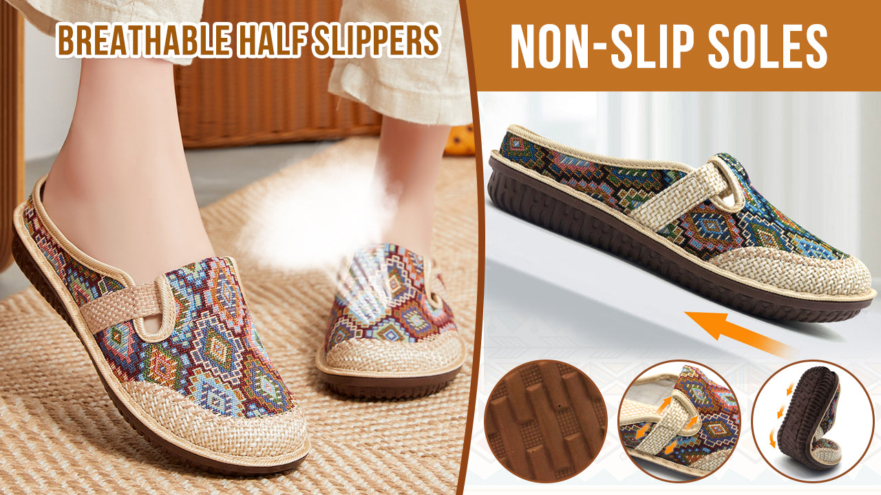 💖【35-41】Dámské pantofle s měkkou podrážkou z vyšívaného lnu
