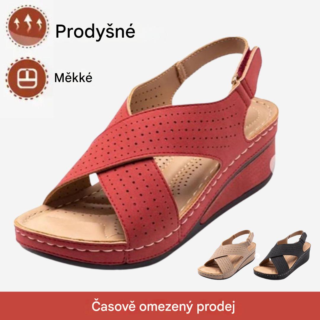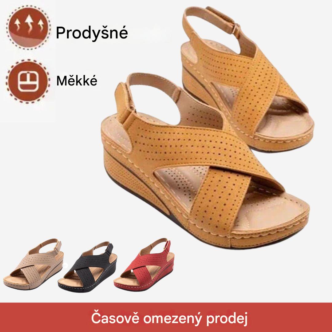 ✨👡【Sleva 50 % 🔥】【35–43】Dámské sandály s výřezy, na silné podrážce a klínovém podpatku, na suchý zip, dostupné i ve větších velikostech