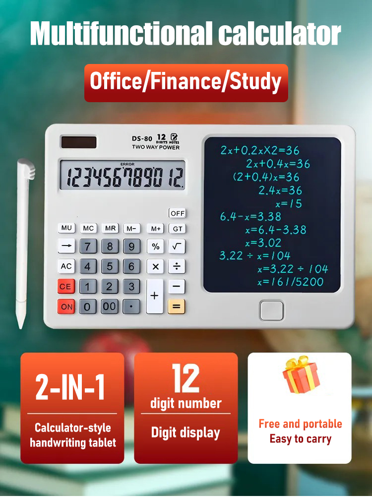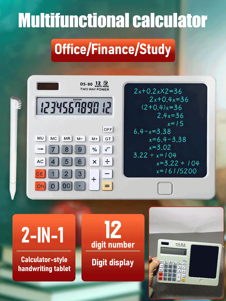 ✨ ✨Stolní kalkulačka s podložkou pro psaní, multifunkční podložka pro kancelářské použití v účetnictví a financích, chytrý počítač