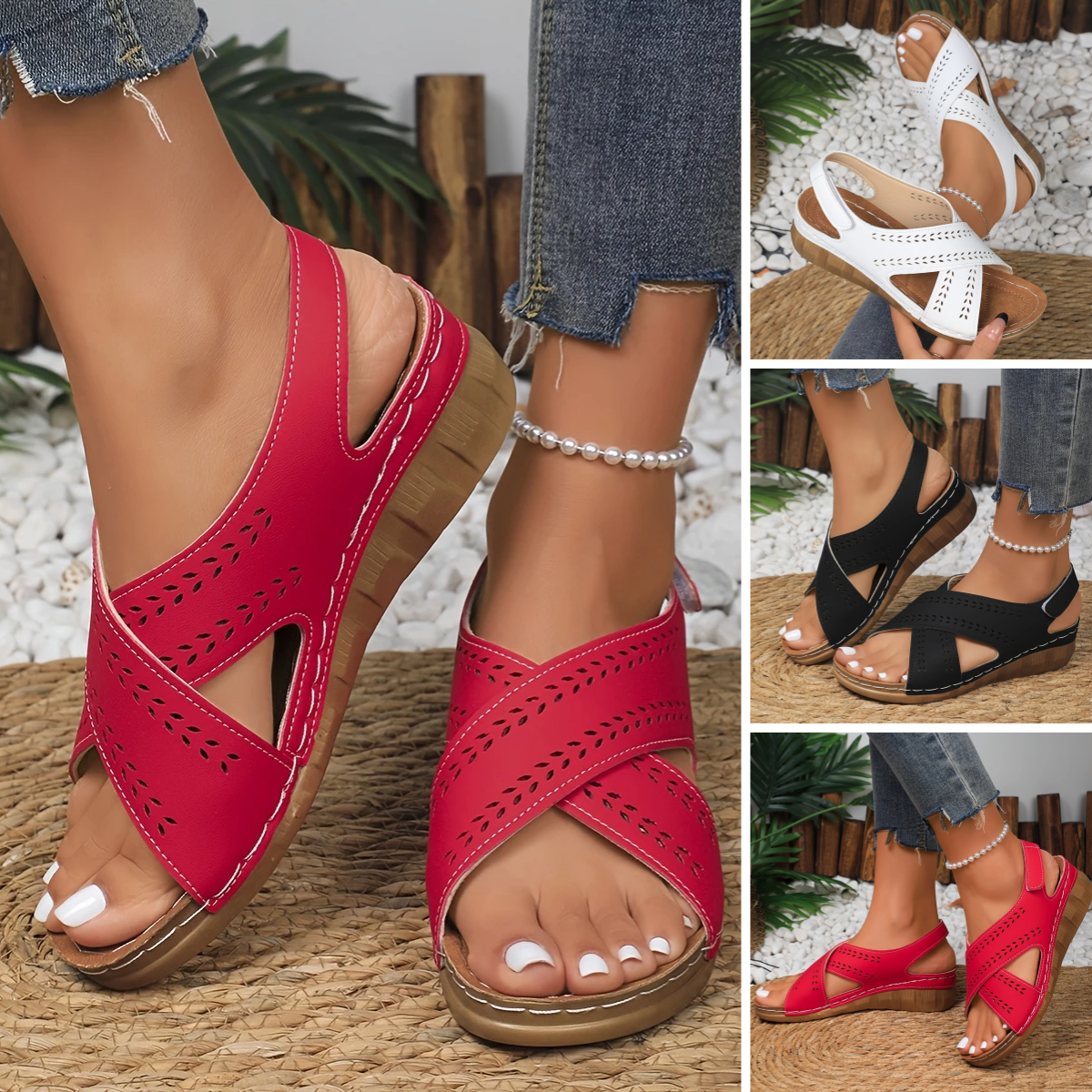 ✨【36-43】Dámské sandály na klínku s kontrastním páskem na kotníku, pohodlné sandály