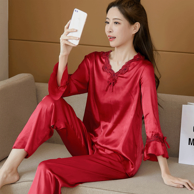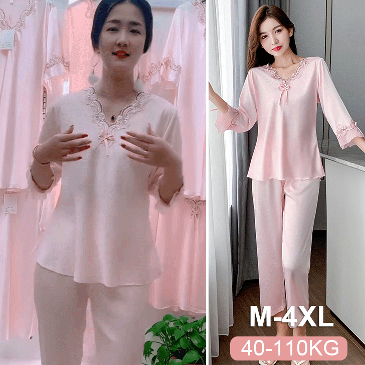 ✨【Letní sleva -50% 🔥】【S-4XL】Dvoudílné pyžamo z ledového hedvábí
