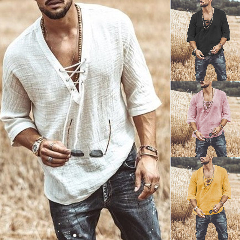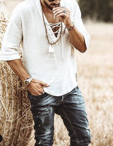 ✨【XS-5XL】【Výprodej】Volná a pohodlná pánská košile s výstřihem do V a kravatou na hrudi 2025