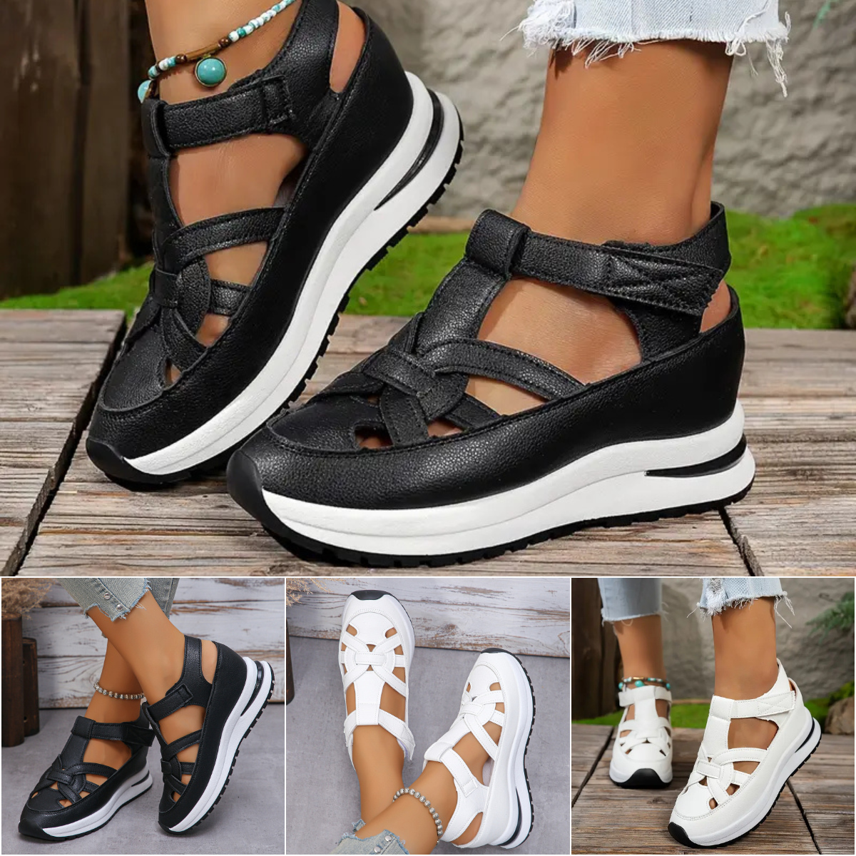 👡✨【🏆Letní akce na nový produkt - 50% sleva🔥】【35-43】😍 Nové velké dámské sandály na platformě pro volný čas, velké sandály na klínku na suchý zip