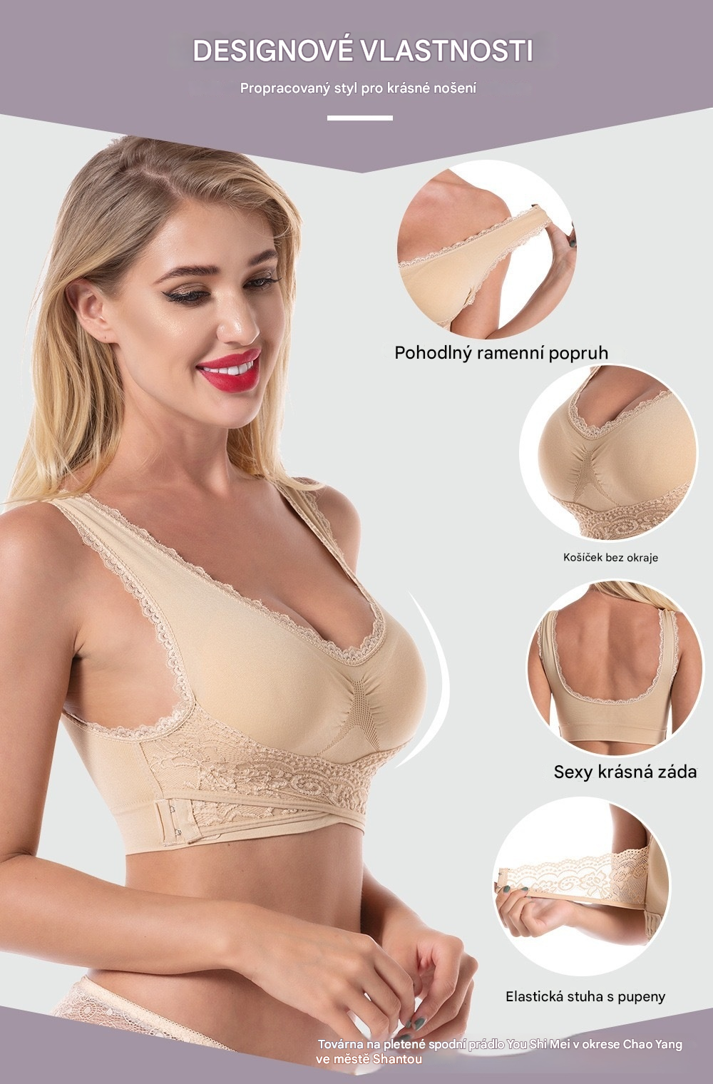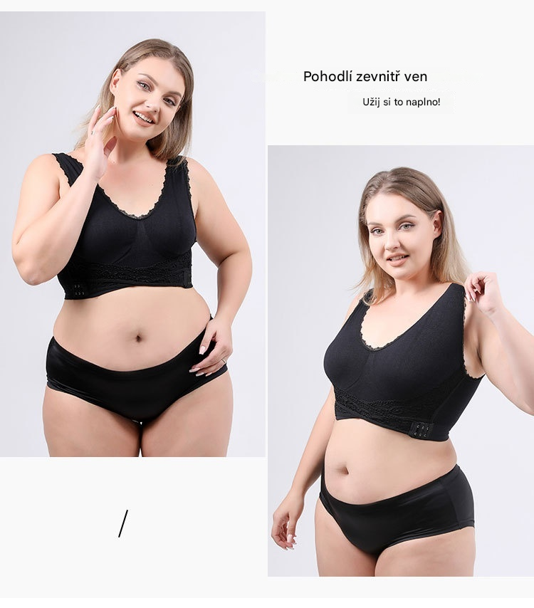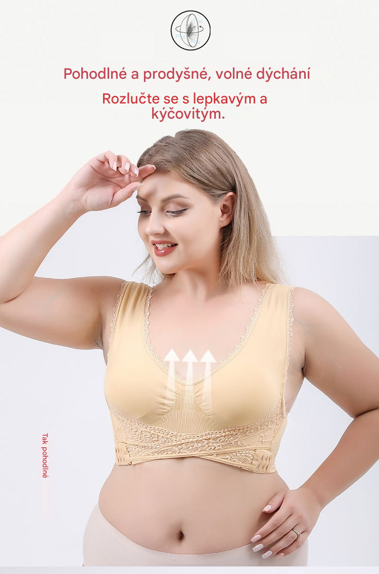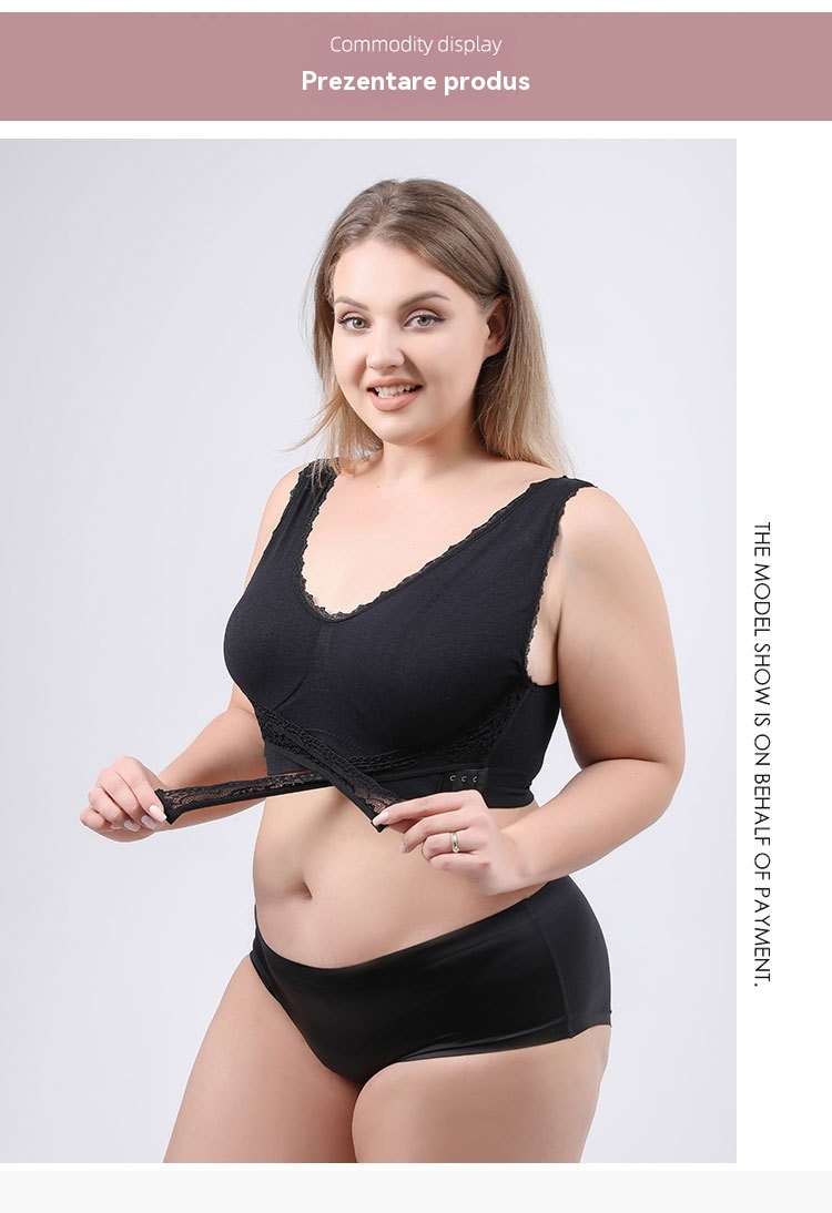 👩⚕️【S-6XL】Dámská podprsenka s boční křížovou přezkou, velká velikost, s krajkovými okraji, bez ocelových kroužků -4078586