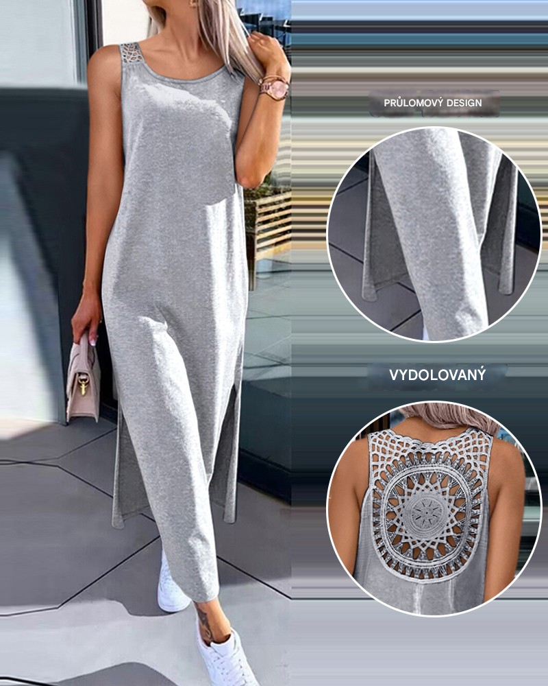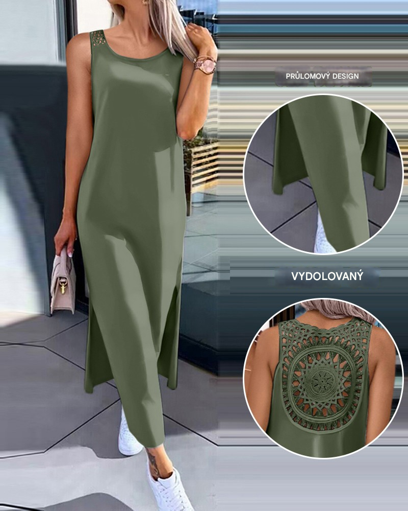 💋✨【50% sleva 🔥】【S-XXL】✨👗 Šaty bez rukávů větší velikosti, zadní výstřih, boční rozpark
