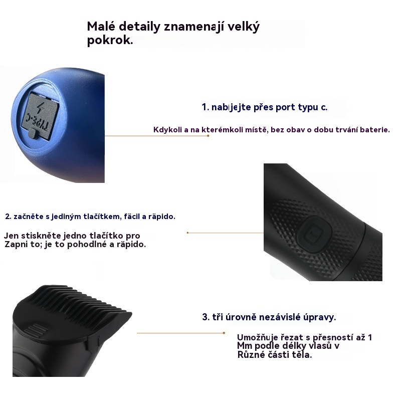 🔥Sleva -47%🔥 Pánský elektrický holicí strojek s digitálním displejem a zastřihovačem chloupků